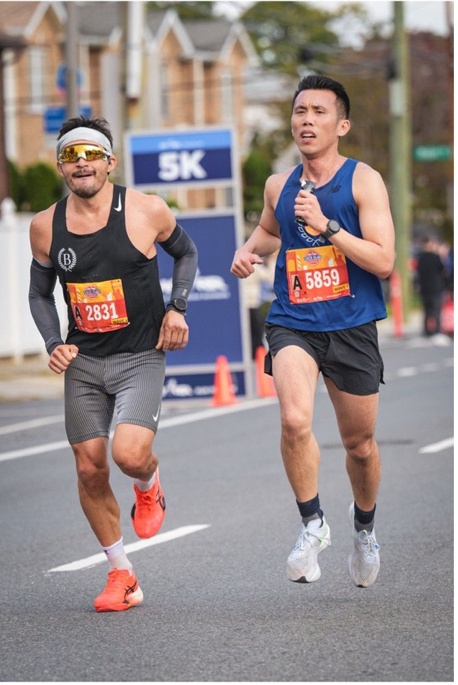 En medio de todo esto, cuando lo recomendable hubiera sido modificar el calendario para dejar ahí el año 2024 antes de que pasara algo grave, llegó la mañana de competir otra vez, ahora en la media maratón de Staten Island. No tenía ni la más remota idea de por qué me había inscrito a esto a último minuto, y la verdadera razón fue que simplemente lo hice por recibir un par de zapatos “gratis”. Pues como miembro del equipo élite del Brooklyn Track Club (BKTC) de Nueva York, tenemos que completar al menos 5 carreras organizadas por New York Road Runners (NYRR) para sumar puntos para la competencia anual por equipos a cambio de una serie de beneficios, incluyendo un par de zapatos Nike (de los más caros que produce la marca).